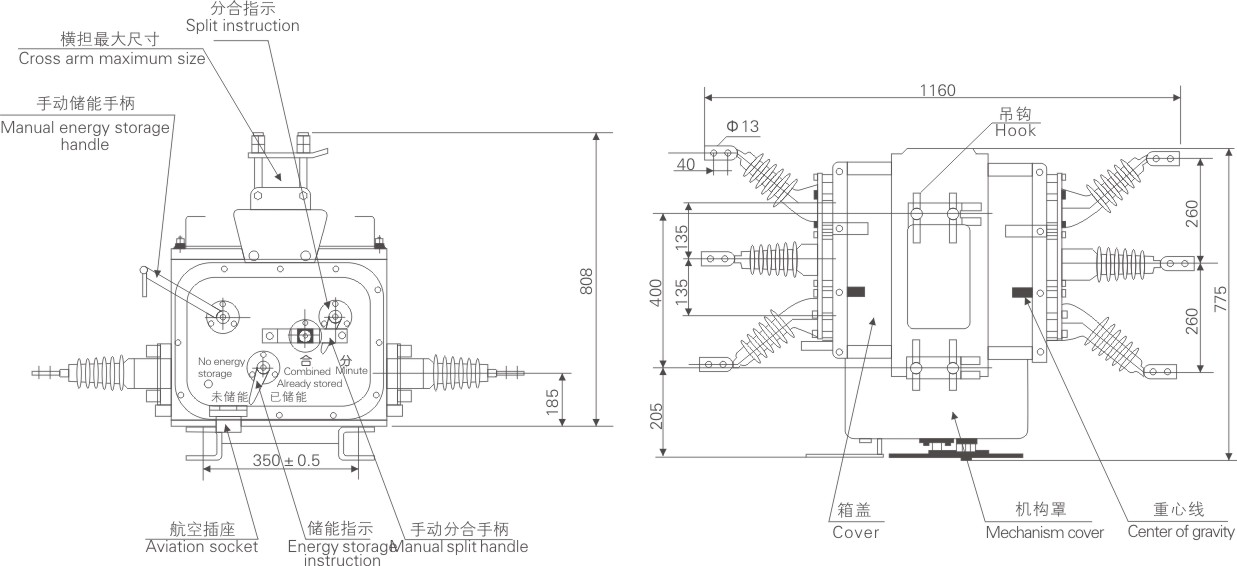 ZW20F-12 outdoor AC high voltage boundary vacuum circuit breaker is an outdoor high voltage switchgear with rated voltage of 12kV and three-phase AC 50Hz. It is mainly used to break and close the load current, overload current and short circuit current of the power system. It is suitable for substation, industrial and mining enterprises and urban and rural distribution network for protection and control, especially for places with frequent operation and urban network automation distribution network. This product is matched with the controller to meet the requirements of the distribution automation system and to perform the traditional recloser function reliably and efficiently. It adopts the mature box-type sealing structure, and is filled with SF6 gas inside. It has good sealing performance and is not affected by the external environment. It is a maintenance-free product. The spring operating mechanism adopts a direct-drive chain main drive and a multi-stage tripping system, which has high operational reliability and is a good product of the circuit breaker on the column.